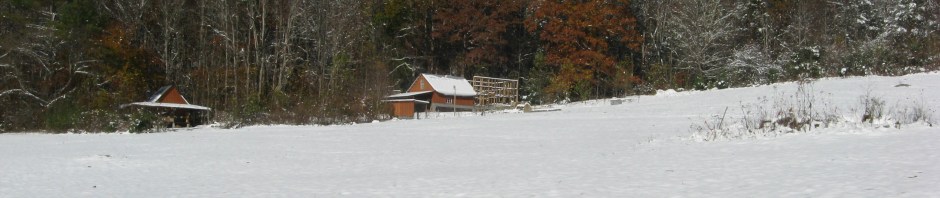 Snow has already come to Flag Pond, Tennessee, this year, and John has been working hard to get our new house under roof by winter. Right now, during our one-year anniversary week, he is in the process of integrating the old and new structures, as the new house is basically a larger two-story addition onto the existing cabin he built six years ago.