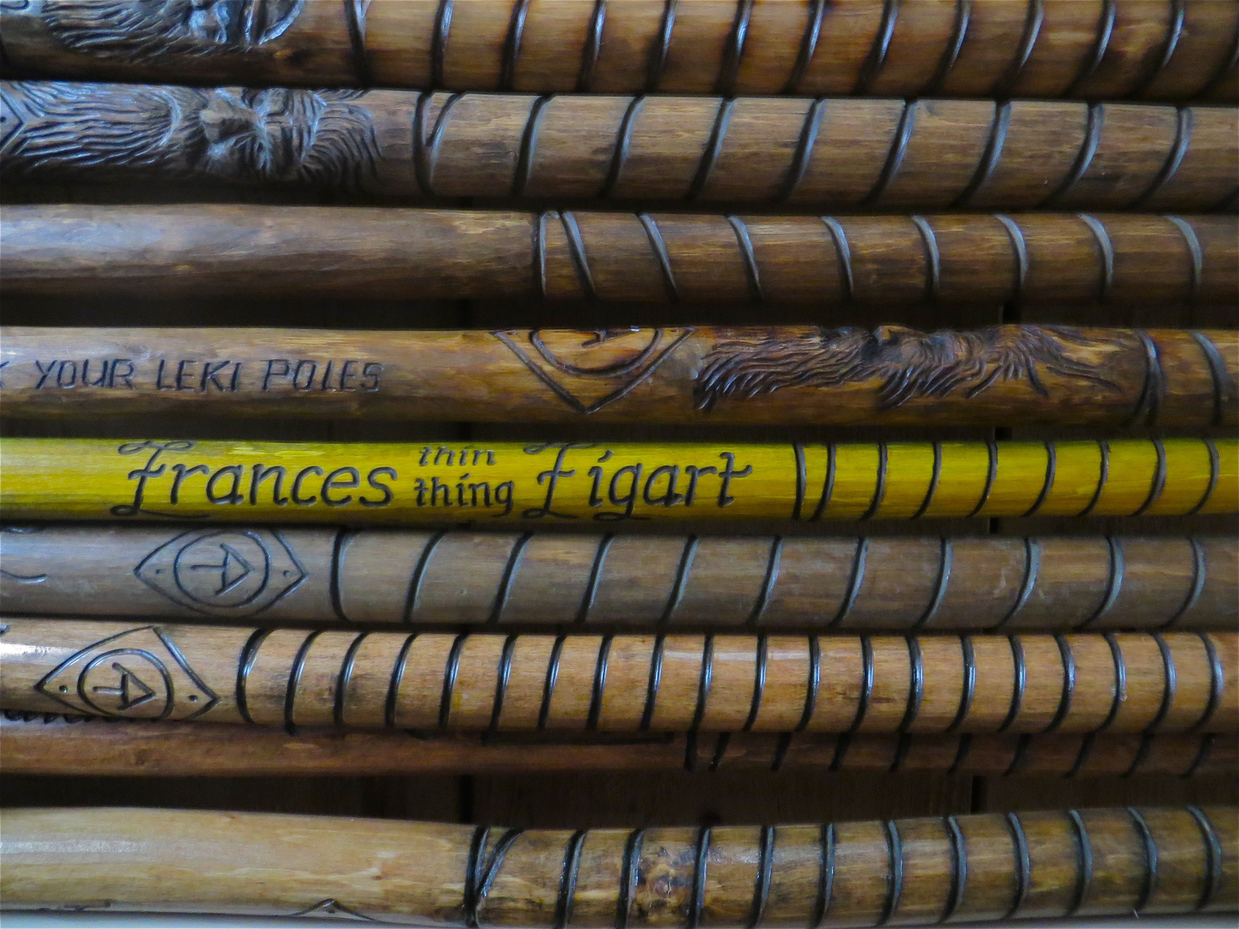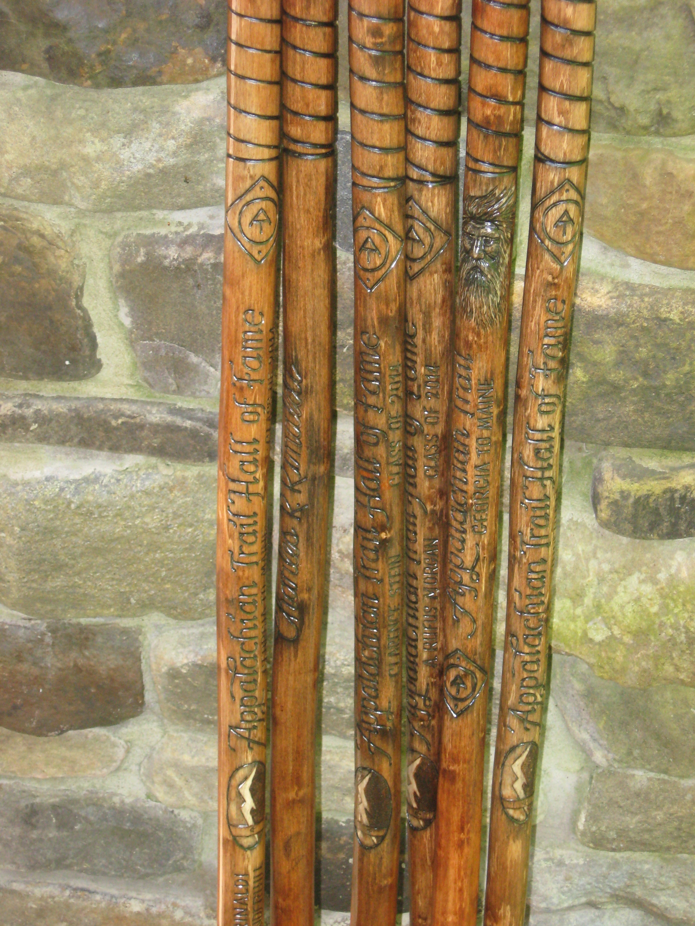 John has used wooden walking sticks for hiking since he was a boy. Eschewing the Leki poles popular with most hikers, he carried one of his own handmade sticks when he hiked the AT in 2001, 2003, 2010 and 2013. When he gave a few of these special sticks to fellow hikers, word spread through the hiking community and eventually reached the newly created Appalachian Trail Museum. Soon Bodacious was providing a stick for each inductee into the museum’s Hall of Fame. The award stick is called a Bodhi or Bo D. Hofman.